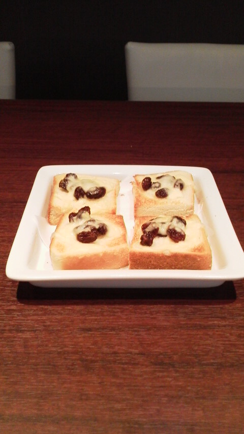 コクのある甘みの干しぶどうにチーズがとろけます。こんがりと焼けたトーストが実に香ばしいです。