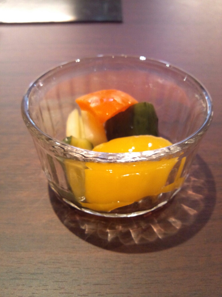 さてショットバーであるがゆえお酒は充実しておりますがおつまみ・フードはある程度限られてしまいます。そこで開店4日目にして新メニューとして「特製ピクルス」をご用意いたしました。栄養満点のフレッシュ野菜を白ワインやお酢でつけたものです。お酒のおともにどうぞご賞味下さい。