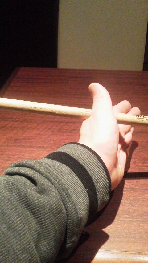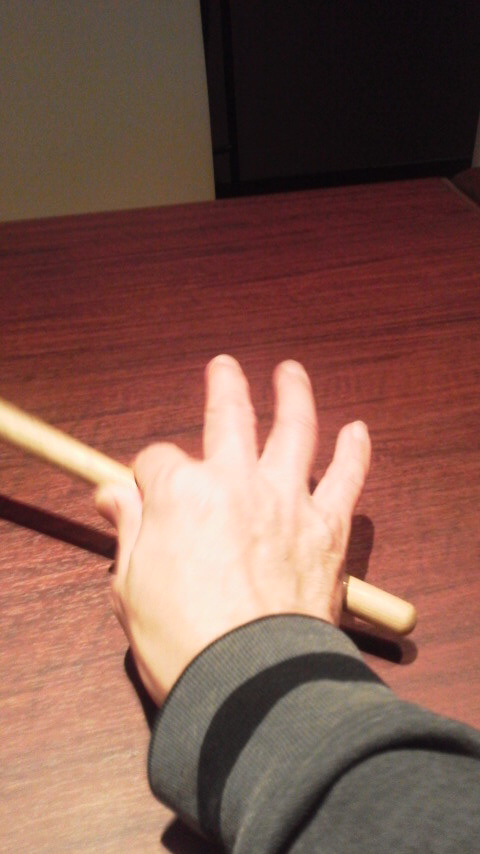 ※右手(R)はスティックの3分の1くらいの所を人差し指と親指でつまみ、残りの3本で軽く握ります。マッチドでやる方は左手(L)は対象に考えればいいのです。手の甲はやや上に向ける感じで。